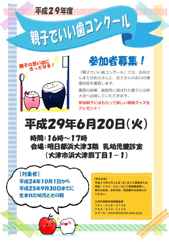 「親子でいい歯コンクール」では、お母さんまたはお父さんと、お子さんのお口の健康状態を審査します。